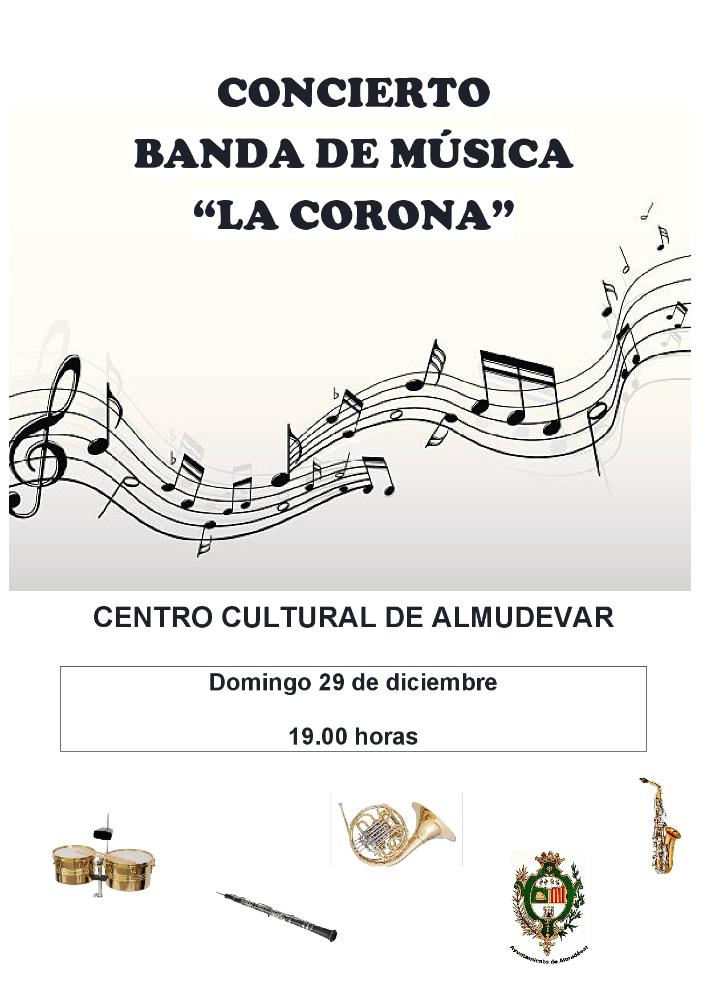 -Domingo 29 de diciembre a las 19.00 horas en el Centro Cultural: Concierto de la BANDA DE MÚSICA LA CORONA.
