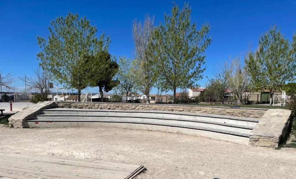 -Sustitución del graderío debido al estado ruinoso de la madera: se ha realizado una estructura de obra y se ha terminado con madera técnica (actuación llevada a cabo por el colegio Santos Samper y el AMYPA Mariano Tomeo).