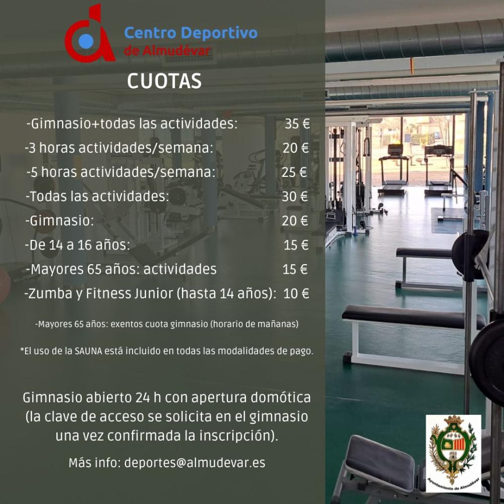 *Los cambios de modalidad de abono así como las bajas deberán comunicarse por mail (deportes@almudevar.es) como máximo el último día del mes anterior. Los cambios y bajas que se comuniquen una vez empezado el mes no se harán efectivos hasta el mes siguiente. Los cobros se realizarán entre el 15 y el 25 de cada mes.