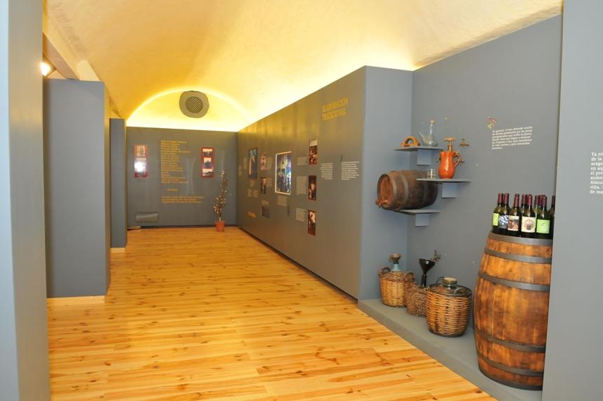 La exposición permanente que se exhibe se estructura en diferentes áreas temáticas, comenzando por una introducción a Almudévar, su entorno y sus cultivos a lo largo de la historia, con la vid y la vendimia como protagonista.